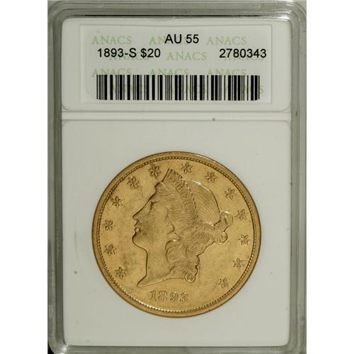 1893-S $20 AU55 ANACS. NGC Census: (14/3648). PCGS