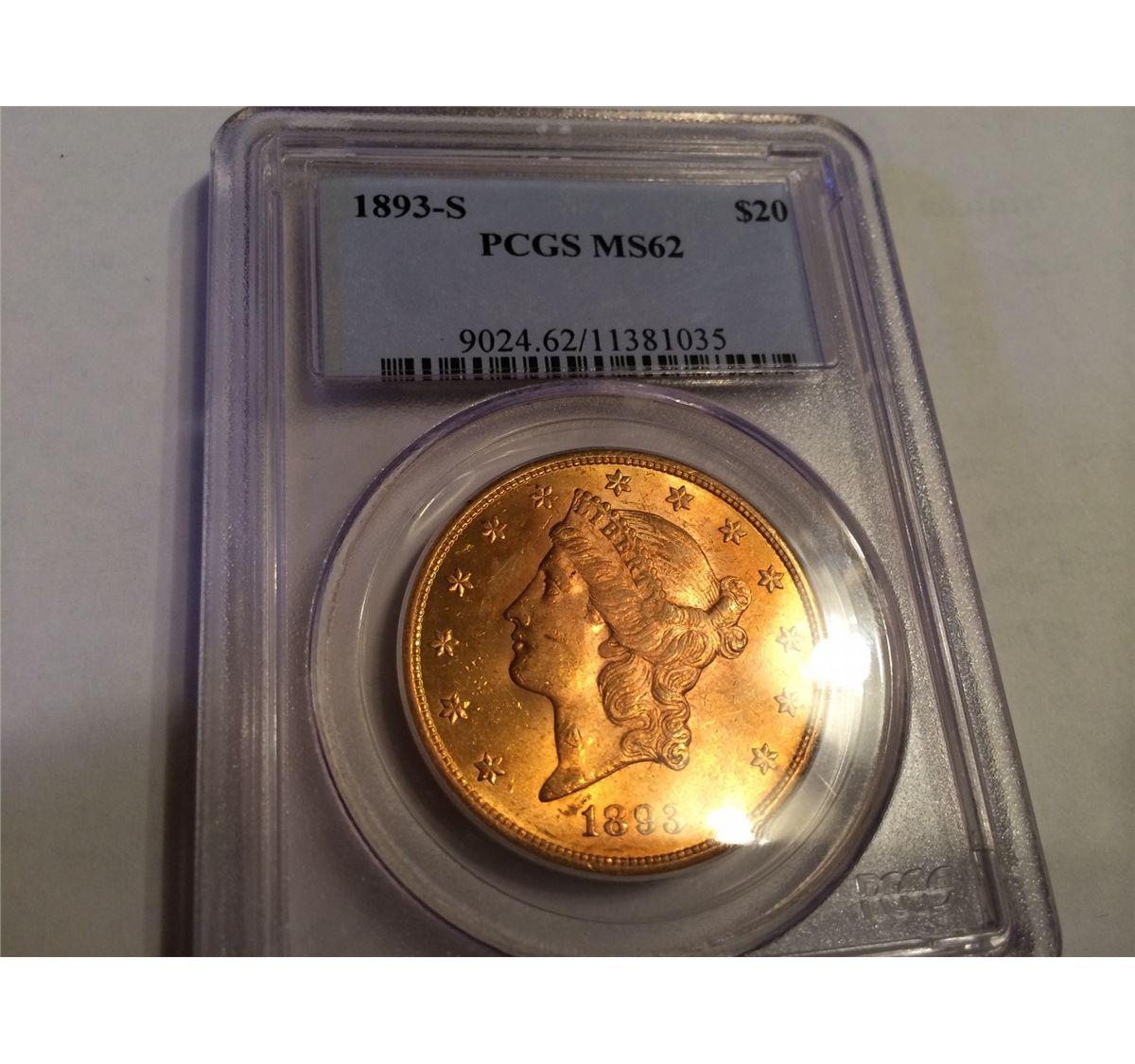 1893-S $20 Gold Liberty Double Eagle MS-62 PCGS