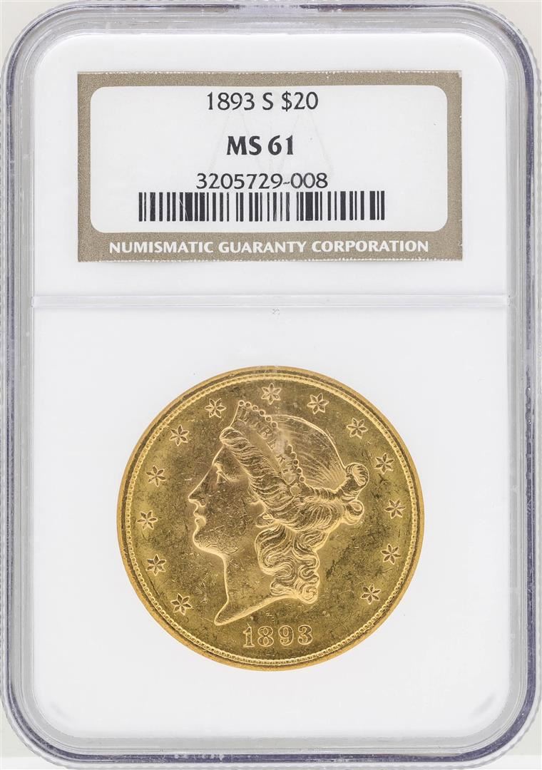 One 1893-S $20 Liberty Head Double Eagle Gold Coin NGC MS61. NGC Certified.