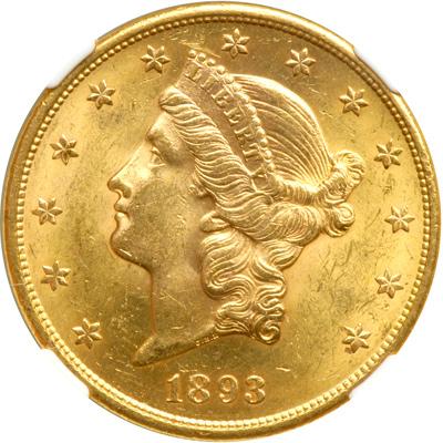 1893-S $20 Liberty. NGC graded MS-61. Lightly toned (PCGS # 9024) .