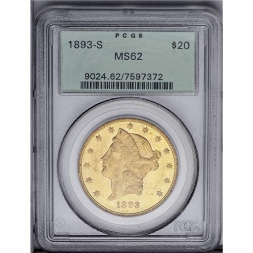 1893-S $20 MS62 PCGS. The centers are better defined t 1893-S[$20] MS62 PCGS.