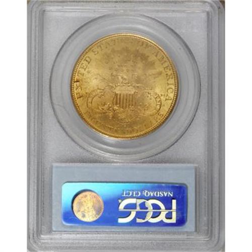 <B>1893-S $20 MS62 PCGS.</B></I> PCGS Population (1037/421). NGC Census: (1332/257). Mintage: 996,175. Numismedia Wsl. Price for NGC/PCGS coin in MS62: $765. (#9024)<BR><BR><B>Coin Engraver:</B> James B. Longacre<BR><BR><b>Shipping:</b> Coins & Currency (<a target="_blank" href="http://www.heritageauctions.com/common/shipping.php">view shipping information</a>\)