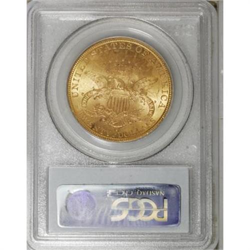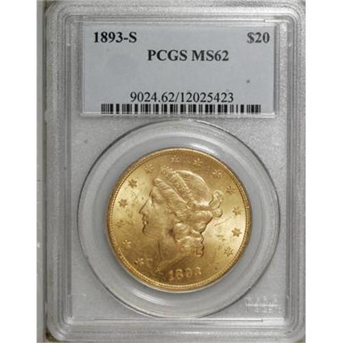 <B>1893-S $20 MS62 PCGS.</B></I> PCGS Population (1117/441). NGC Census: (1342/258). Mintage: 996,175. Numismedia Wsl. Price for NGC/PCGS coin in MS62: $765. (#9024)<BR><BR><B>Coin Engraver:</B> James B. Longacre<BR><BR><b>Shipping:</b> Coins & Currency (<a target="_blank" href="http://www.heritageauctions.com/common/shipping.php">view shipping information</a>)