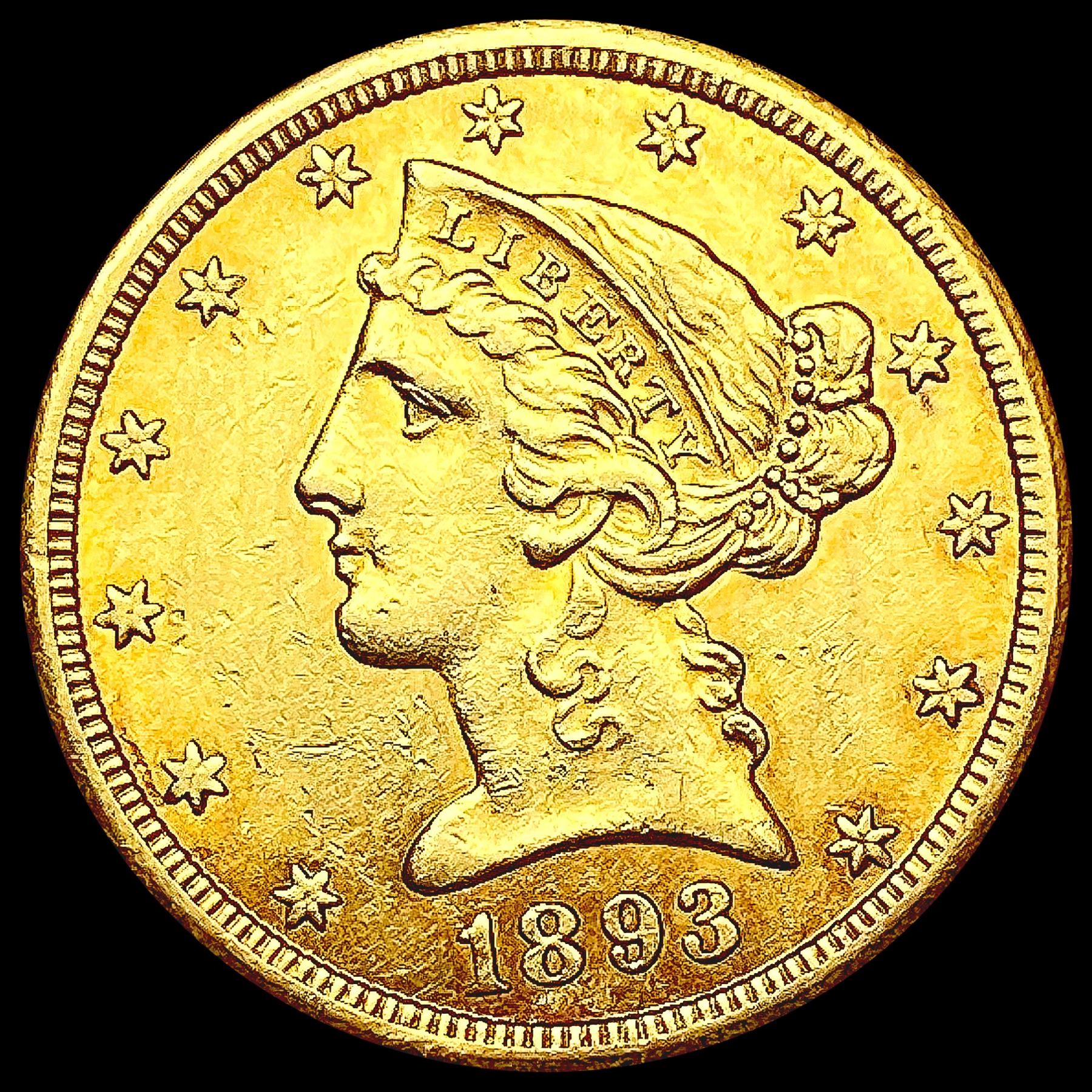 1893-S $5 Gold Half Eagle CLOSELY UNCIRCULATED