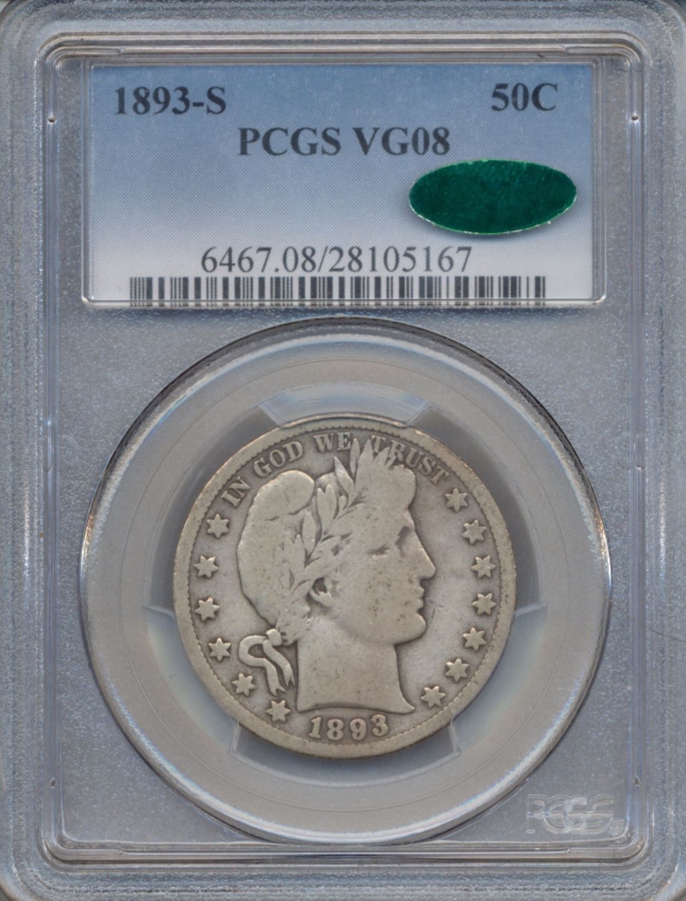 One 1893-S Baber Half Dollar Coin PCGS VG08 CAC.