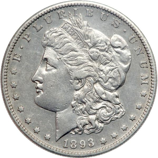 1893-S Morgan Dollar. NGC graded EF-45. A hint of light tone here and there. Well struck, grand eye appeal. A popular key date. In the 1890s, the Sherman Silver Purchase Act of 1890 required the government to purchase 4.5 million ounces of silver monthly at market rates. This was no secret this was an open subsidy given to Western mining interests who profited by it. Such a large quantity amounted to almost the entire production from domestic silver mines. In the ensuing economic crisis of 1893-96, aggravated but not caused by this Purchase Act, the congress had little choice but to repeal the Sherman Act, which it did on November 1, 1893. In the years immediately following, production stalled, with limited production of silver dollars at all Mints since little silver was obtained for this purpose (PCGS # 7226) .