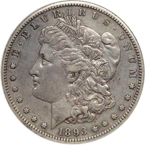 1893-S Morgan Dollar. NGC graded EF-45. A popular key date with light even toning. All original example, not only is the business strike mintage of 100,000 pieces the lowest in the series, but the coin is seldom available in attractive EF and higher grades. There is wealth of detail visible on both sides. The borders and legends have full detail. The cheek smooth and injury free, best of all there are no noticeable abrasions. Expect rife competition among bidders (PCGS # 7224) .