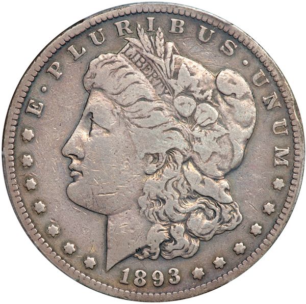 1893-S Morgan Dollar. Our grade is Fine 15 and nicely toned. A popular key date (PCGS # 7226) .