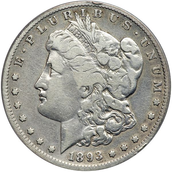 1893-S Morgan Dollar. Our grade is VG8 lightly cleaned. Only 100,000 minted. Key date in the set (PCGS # 7226) .