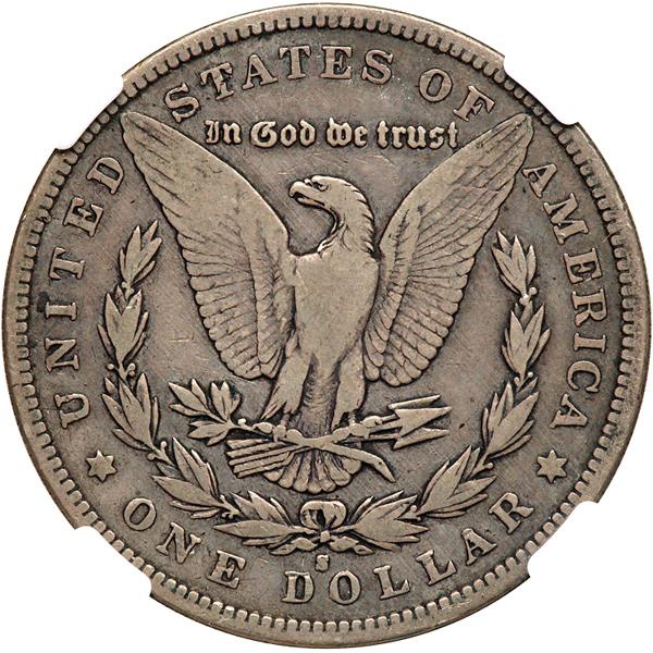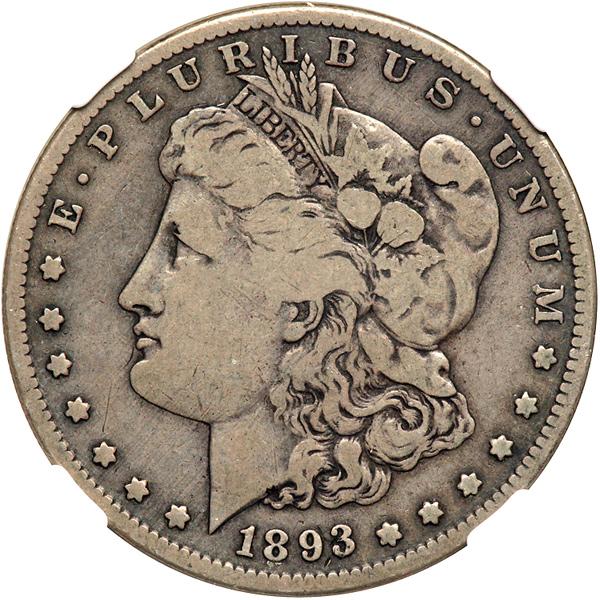 1893-S Morgan Dollar. NGC graded VG-8. Nice even wear and problem free. Popular key date, the 1893-S issue has been under constant price pressure from new silver dollar collectors entering the market for more than 60 years now vying for the limited supply of attractive coins (PCGS # 7224) .