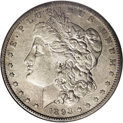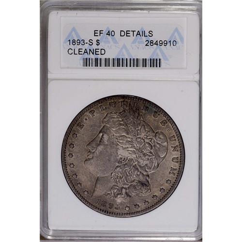 <B>1893-S<img border='0' src='http://www.heritagecoins.com/images/star.gif' width=10 height=10>$1>--Cleaned--ANACS. XF40 Details.</B></I> The surfaces are retoned to a mellow gray-golden. There are no mentionable marks, and reasonable sharpness for an XF example shows on this important key issue.