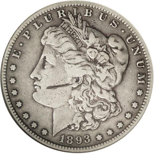 <B>1893-S<img border='0' src='http://www.heritagecoins.com/images/star.gif' width=10 height=10>$1>--Damaged--ANACS. VF20 Details.</B></I> Attractive light to medium gray patina bathes each side, and the design elements reveal nice detail for the grade. Unfortunately, a relatively deep, horizontal gouge is located on Liberty's cheek. An affordable opportunity for the Morgan dollar collector seeking to acquire this key date in order to complete a mid-grade collection of this popular series.