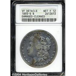 <B>1893-S<S$1>--Damaged, Cleaned--ANACS. VF Details, Net Fine12.</B></I> The surfaces are unnaturally bright, and reveal a few areas of reddish-brown color. Light abrasions are scattered about, none of which are individually serious, and hairlines can be observed on the obverse as the coin is tilted under a light source. Light rim damage is seen at 12 o'clock on the obverse, and is somewhat more evident at 6 o'clock on the reverse. An eternally popular key date Morgan dollar in all states of preservation.<BR><I>From The Paulsboro Collection, Part Two.</B></I> <BR><BR><B>Important notice:</B> Heritage usually auctions material at the rate of 200-250 lots per hour. On some occasions eBay Live bid software or the Internet may not be able to keep up with the pace of the auction. We recommend placing a realistic absentee bid now as insurance to avoid disappointment. Occasionally the auctioneer may eliminate or reject an eBay Live bid, and the auctioneer may also reopen a lot after the close of the eBay live bidding (usually because we missed an audience bid), and may reject your bid even if it shows you as the winning bidder. By bidding via eBay Live, you agree that Heritage may award the lot to another bidder at its sole discretion under the circumstances described above or any other reasonable circumstances. Since eBay bids are not shown to us until we open the lot on the floor, we treat those bids just like floor bids. In most cases the floor responds before the eBay bid is presented to us, due to Internet lag time, so for consistency we have made it a policy that floor bids are always considered first over tie eBay live bids. Also please note that all Heritage lots purchased through eBay Live carry a 20% Buyer's Premium. Please make sure you read the Terms and Conditions before you bid. </span></font></tr></table></td></tr></table>