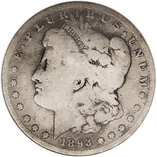 <B>1893-S<img border='0' src='http://www.heritagecoins.com/images/star.gif' width=10 height=10>$1> Good 6 ANACS.</B></I> Extensively worn, but without any serious defects. A few minor abrasions are to be expected at the grade level. Pleasing golden-gray patination covers each side. An affordable opportunity to acquire this important date.