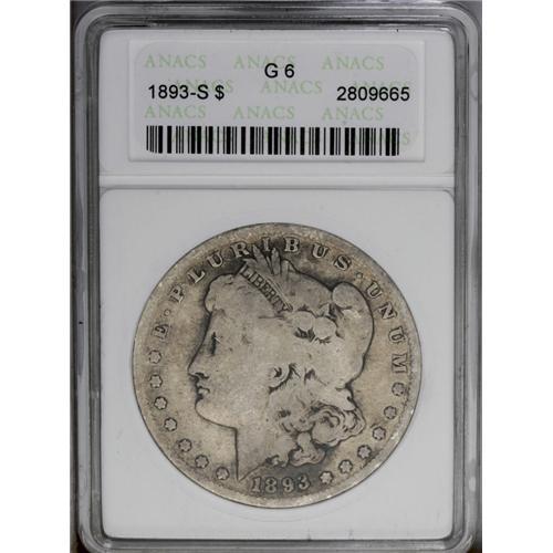 1893-S S$1 Good 6 ANACS. Extensively worn, but without