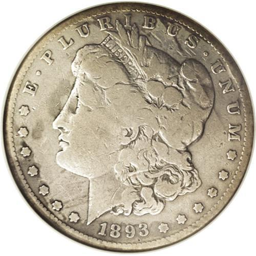 <B>1893-S<img border='0' src='http://www.heritagecoins.com/images/star.gif' width=10 height=10>$1>--Scratched--ANACS. VG Details, Net Good 6.</B></I> The rims are full on both sides and a pleasing amount of deep detail remains--but there is a long, arcing scratch through the lower hair curls and the neck. An affordable example that is better detailed than would otherwise be the case.