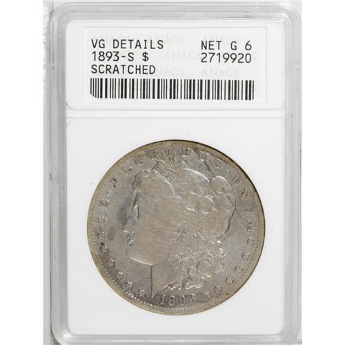 1893-S S$1 --Scratched--ANACS. VG Details, Net Good 6.