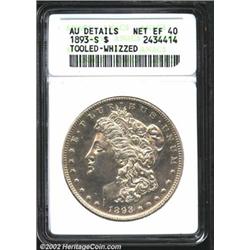 1893-S S$1--Tooled, Whizzed--ANACS. AU Details, Net XF40. With only 100,000 pieces struck, the 1893-S is the key issue in the Morgan series in all grades. This piece is bright from the cleaning, but the overall appearance is really quite nice considering the problems that are present. Important notice: We expect to be auctioning lots at the rate of 200-250 per hour. Sometimes eBay Premier live bid software cannot keep up with that pace, so we strongly recommend that you place a realistic proxy bid now as insurance to avoid disappointment. Also please note that all Heritage/CAA lots purchased through eBay Premier carry a 20% Buyer's Premium. Please make sure you read the Terms and Conditions.
