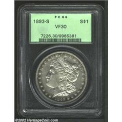 1893-S S$1 VF30 PCGS. Evenly worn over the highpoints and mostly brilliant except for a thin ring of