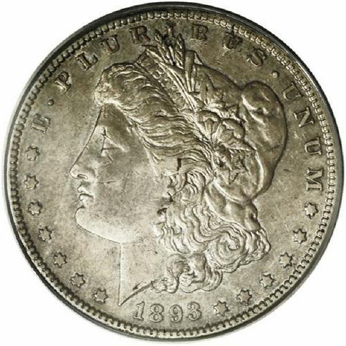 <B>1893-S<img border='0' src='http://www.heritagecoins.com/images/star.gif' width=10 height=10>$1> XF40 PCGS.</B></I> A near-perfect Extremely Fine representative of the well known key to the Morgan dollar series. The surfaces are medium gray-golden and retain part of the original luster in the recessed areas. A old diagonal mark on Liberty's cheek is more than offset by the overall attractiveness of this solid XF 1893-S dollar.