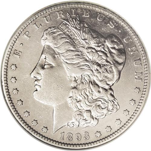 <B>1893-S<img border='0' src='http://www.heritagecoins.com/images/star.gif' width=10 height=10>$1> XF45 NGC.</B></I> A charming Choice XF example of this key-date Morgan dollar, with good brilliance and untoned surfaces. Examination under a loupe reveals only a normal quotient of undistracting abrasions, none of them worthy of singular mention. The only mentionable quibble is a somewhat flat strike through the center of each side, so that the ear over the hair and the eagle's breast lack much detail. The diagnostic tiny rabbit-ear raised die marks in the bottom left corner of the R, and the die line across the T, both of LIBERTY, are plain on this lightly circulated example.