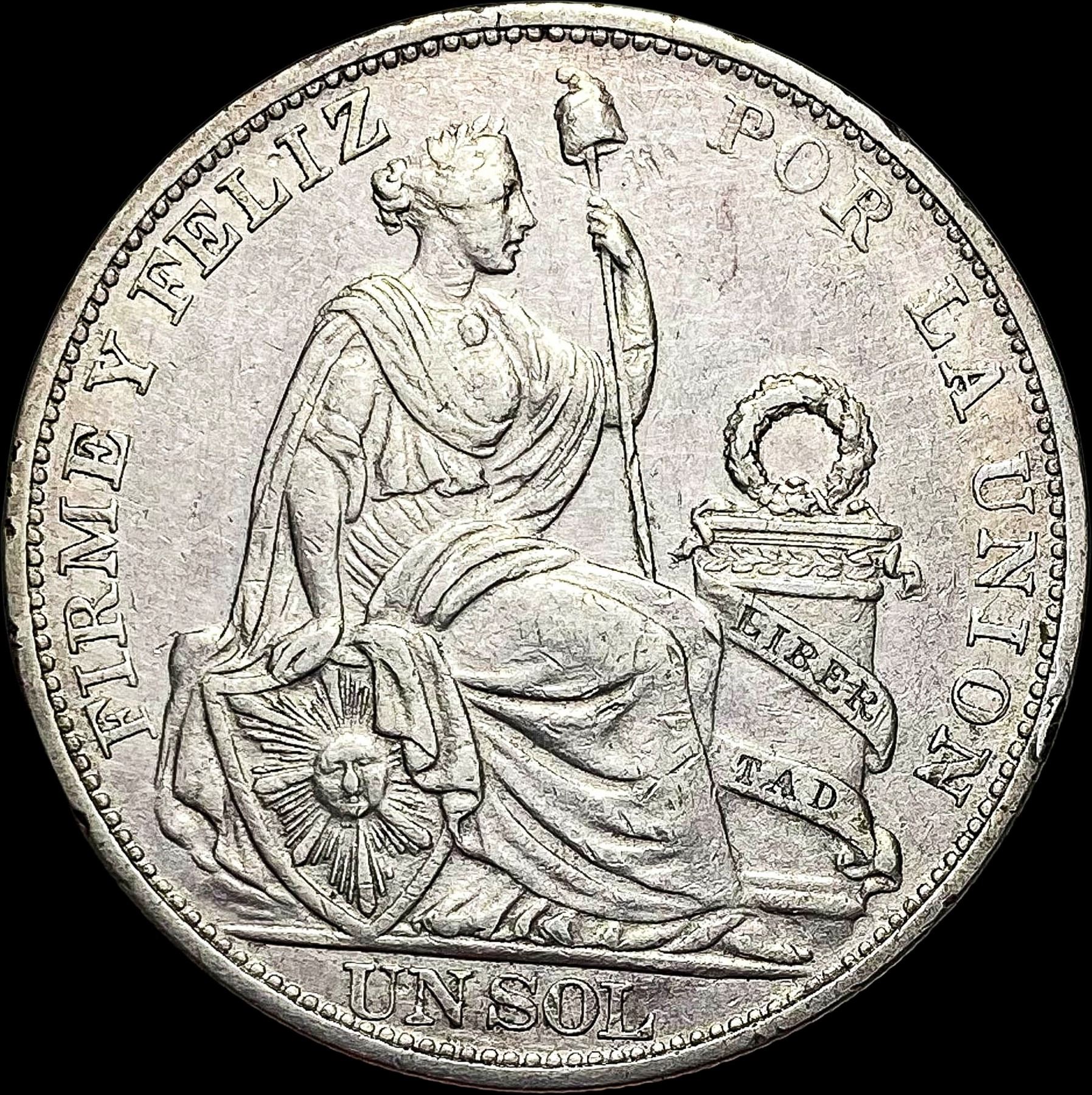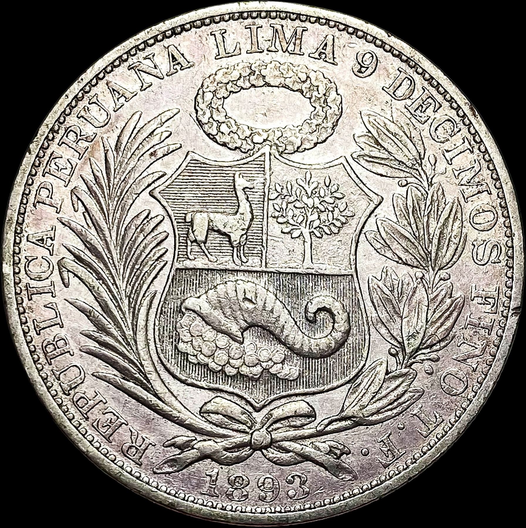 1893 Silver Un Sol Peru CLOSELY UNCIRCULATED