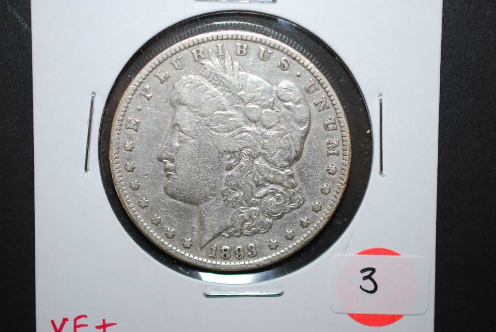 1893 US Silver Morgan $1; VF+; EST. $195-250
