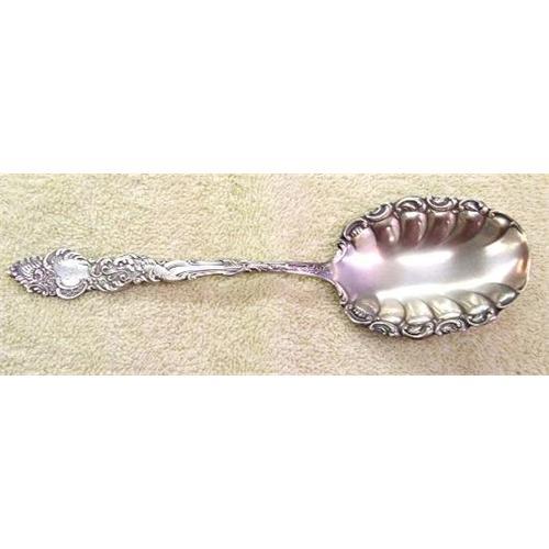 This is a beautiful Rogers Bros. silverplate berry spoon. It is the 1893 Columbia pattern and is in excellent condition. This is a highly desirable pattern. It has an L monogram. It is almost 9" long.