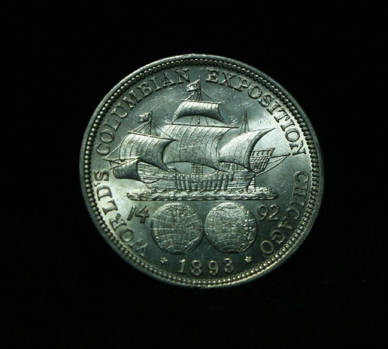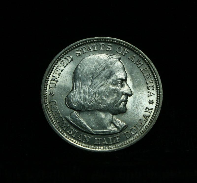 A very attractive example with great luster on this first US Commemorative. The Columbus Half dollar along with the Isabella Quarter were minted in honor of the 400th anniversary of Columbus' voyage to the new world. It was first distributed at the worlds fair honoring that voyage. When examining a Columbian Exposition half dollar The first points to show wear are Columbus’ eyebrow, cheek and the hair behind his forehead and jaw. On the reverse, check the foresail and mainsail, as well as the right side of the Eastern Hemisphere. Coin World's Coin Values lists ms64 at $160. Wholesale Greysheet Value in ms64 is $110. Estimated Value $125