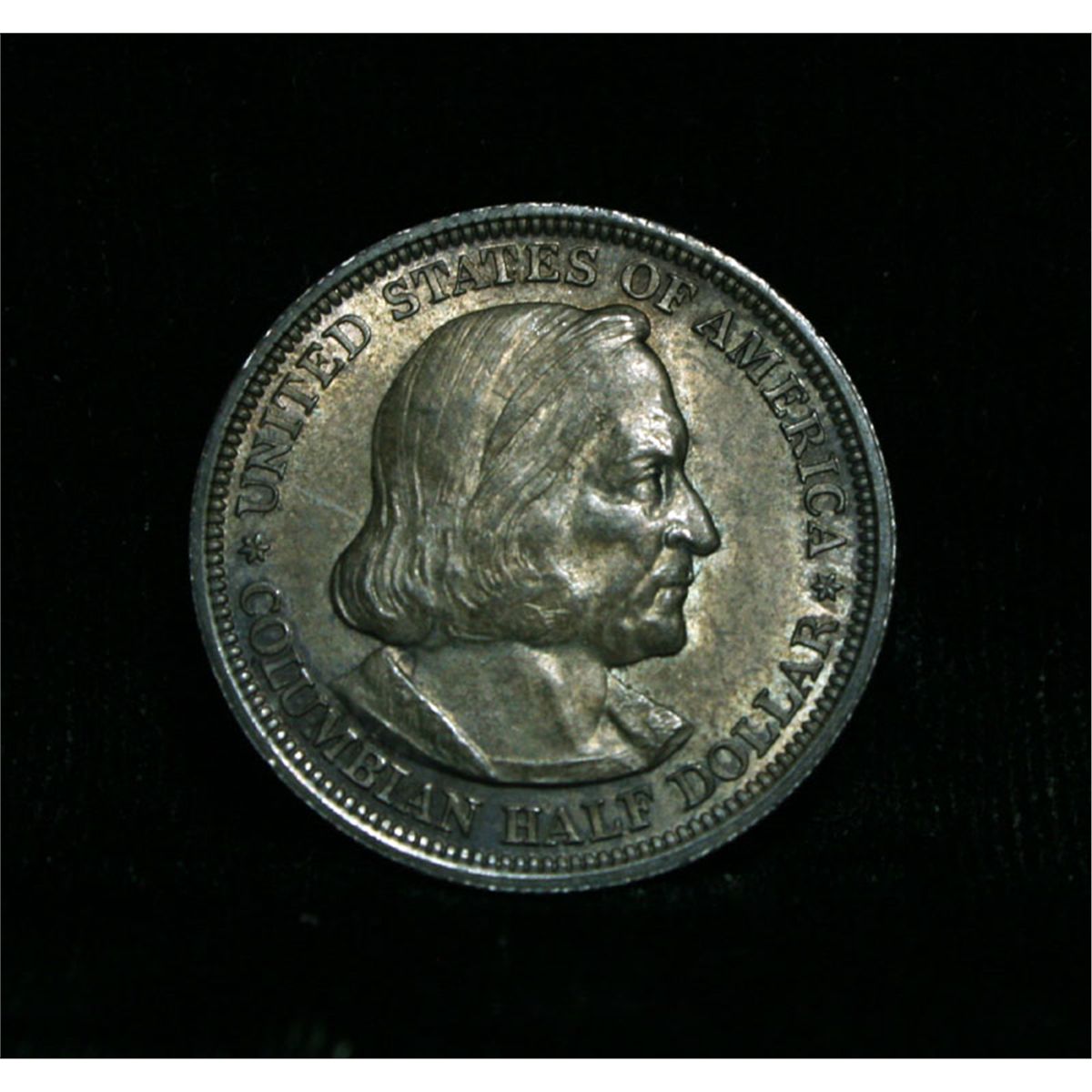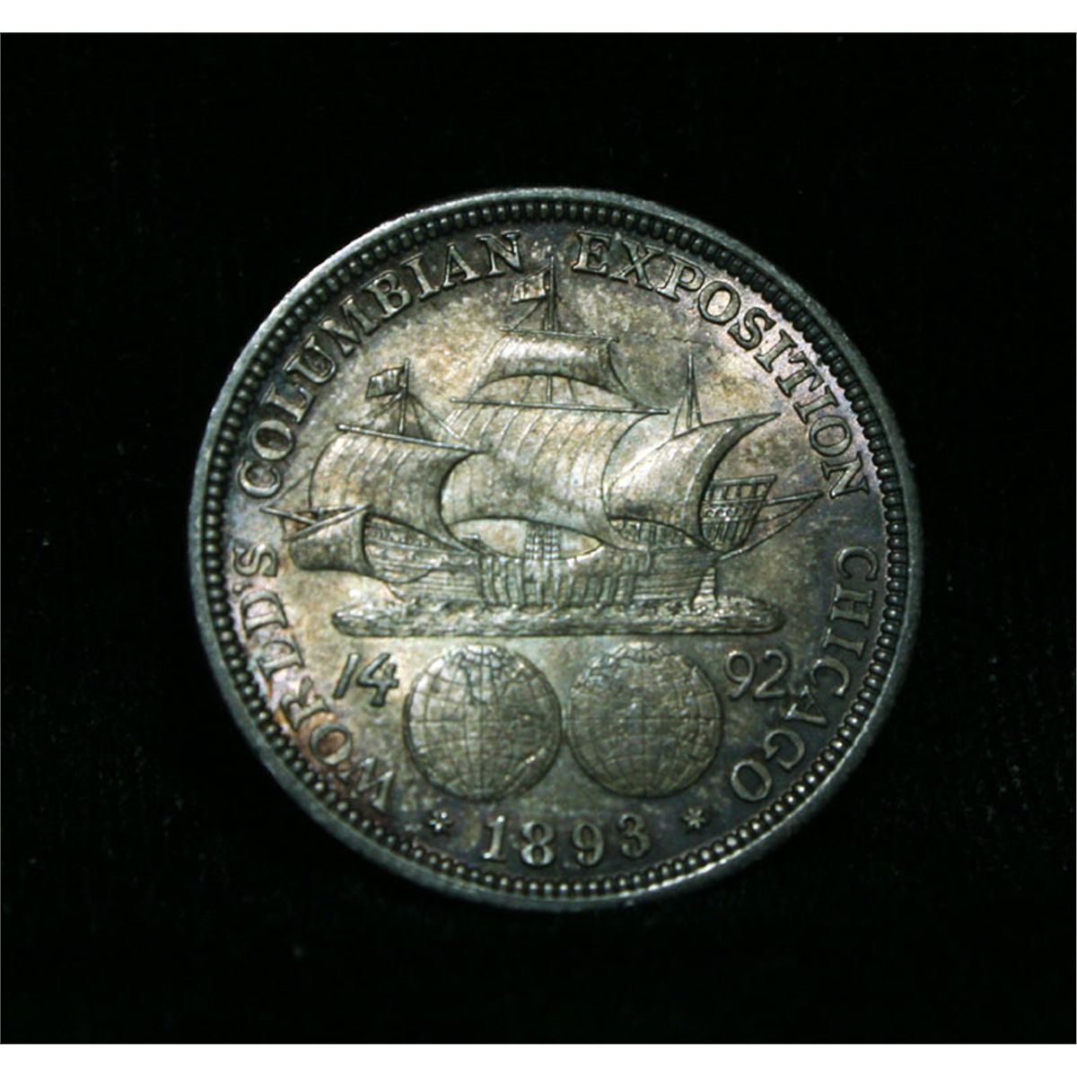 A heavily toned all original example with good luster on this first US Commemorative. The Columbus Half dollar along with the Isabella Quarter were minted in honor of the 400th anniversary of Columbus' voyage to the new world. It was first distributed at the worlds fair honoring that voyage. When examining a Columbian Exposition half dollar The first points to show wear are Columbus’ eyebrow, cheek and the hair behind his forehead and jaw. On the reverse, check the foresail and mainsail, as well as the right side of the Eastern Hemisphere. Coin World's Coin Values lists ms63 at $90. Wholesale Greysheet Value in ms63 is $63. Estimated Value $70