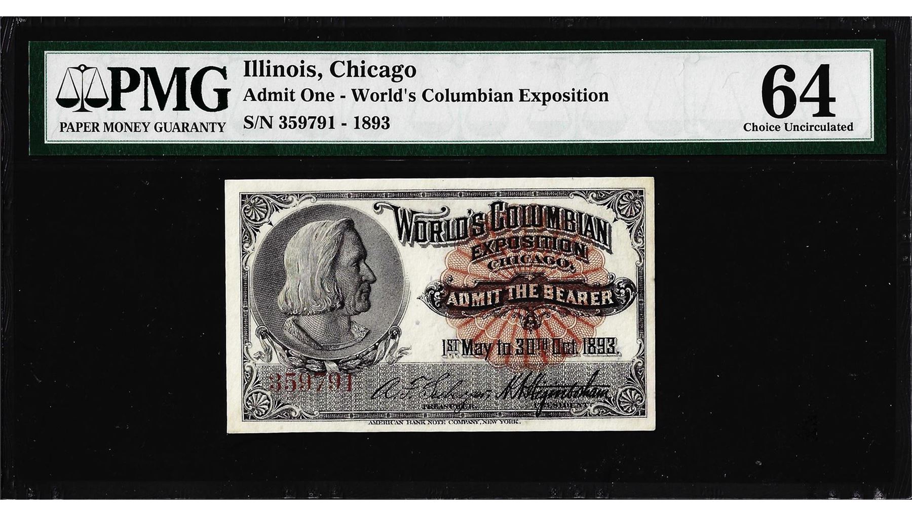1893 World's Columbian Exposition Ticket Columbus PMG Choice Uncirculated 64
