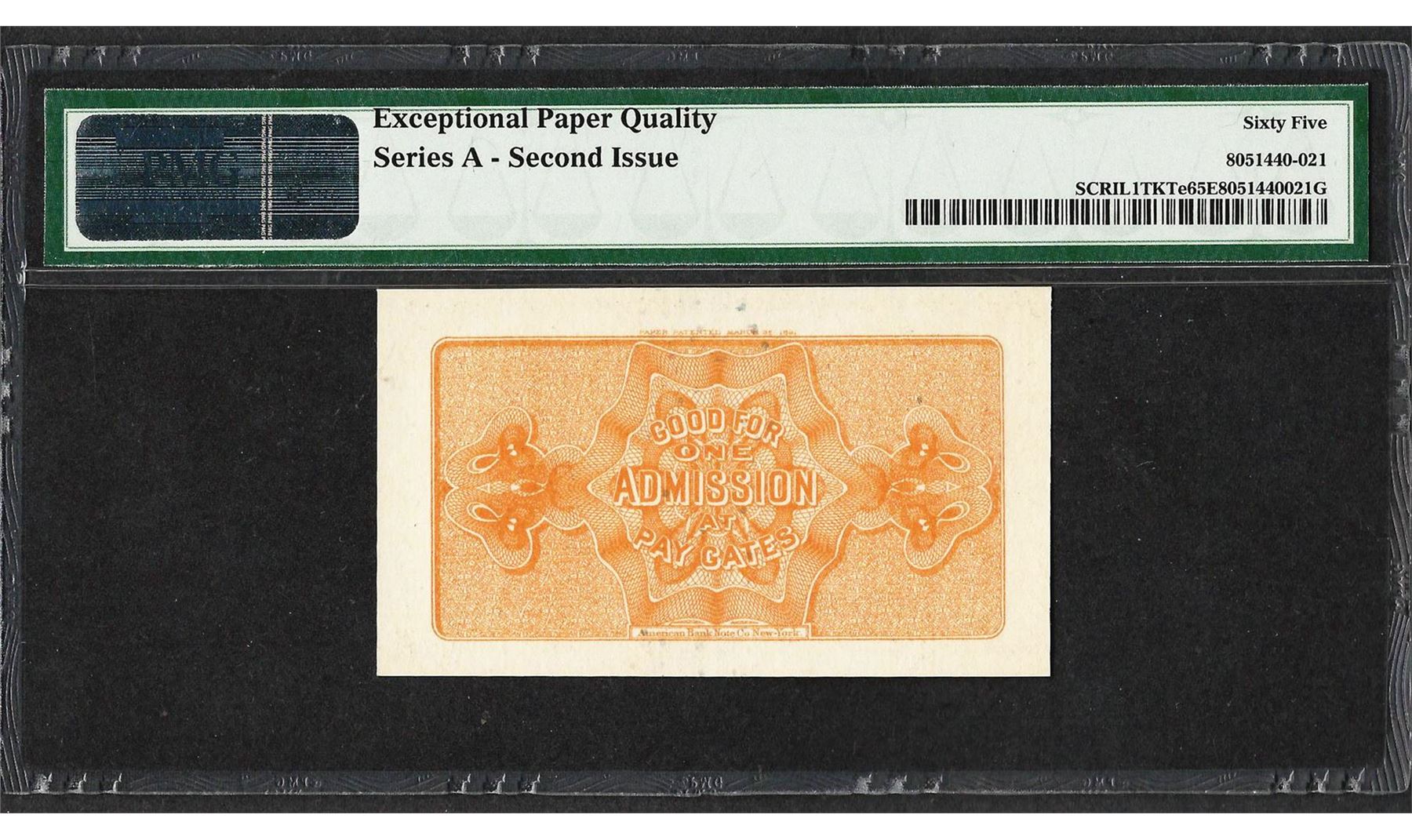 One 1893 World's Columbian Exposition Ticket Franklin PMG Gem Uncirculated 65EPQ. PMG Certified.