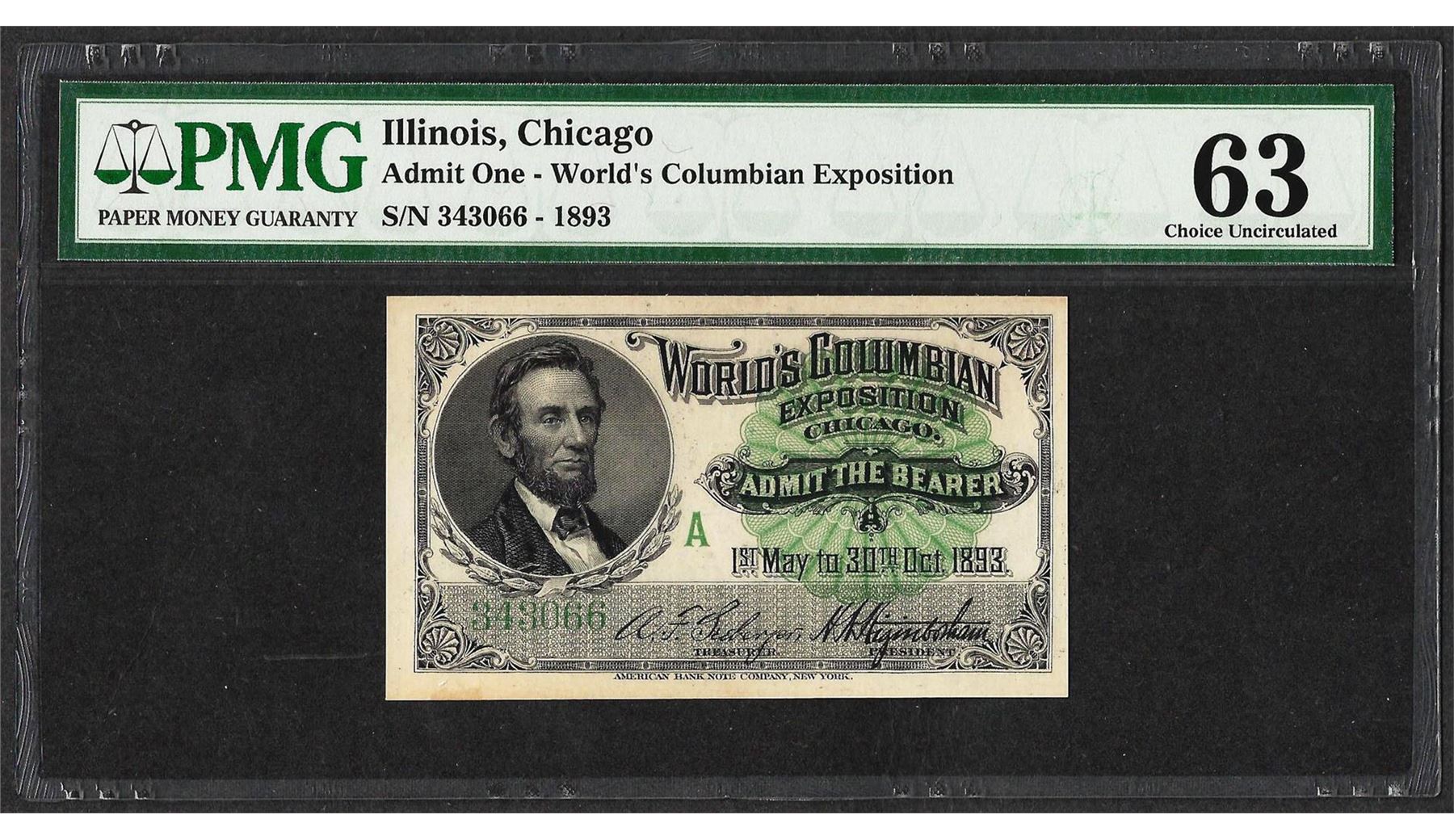 1893 World's Columbian Exposition Ticket Lincoln PMG Choice Uncirculated 63