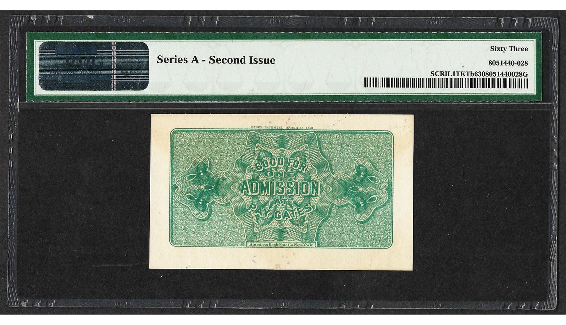 One 1893 World's Columbian Exposition Ticket Lincoln PMG Choice Uncirculated 63. PMG Certified.