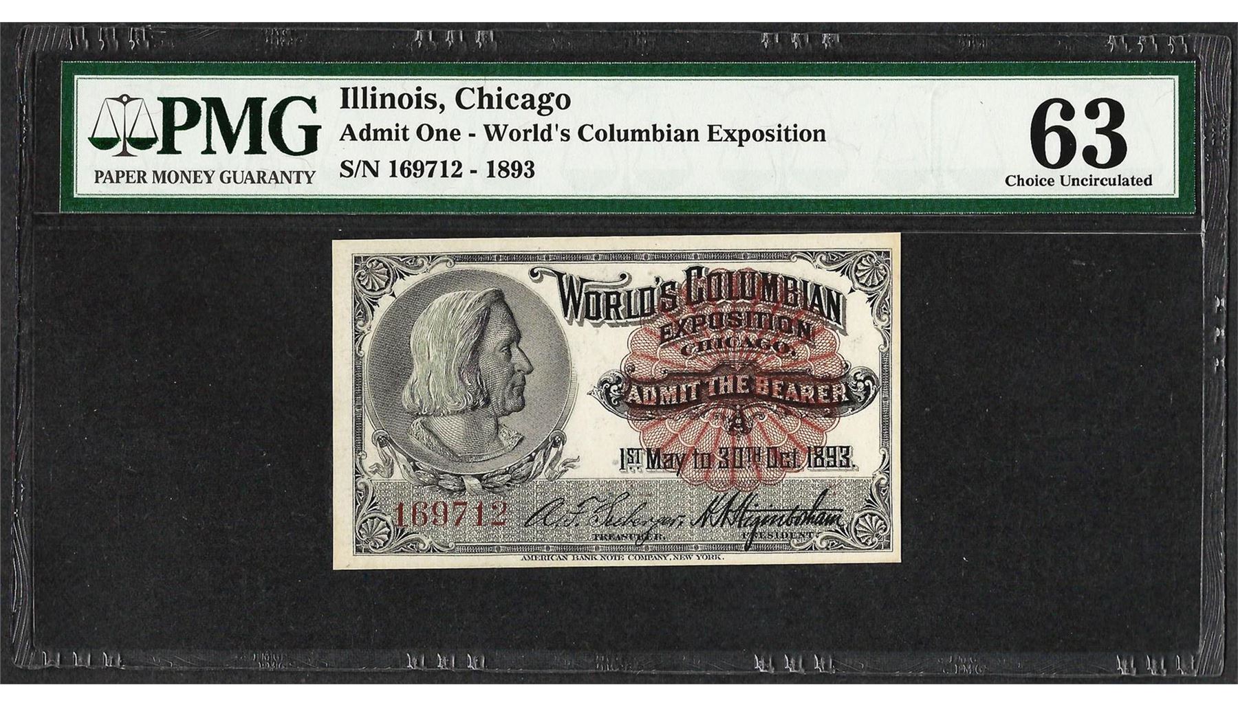 1893 World's Columbian Exposition Ticket PMG Choice Uncirculated 63