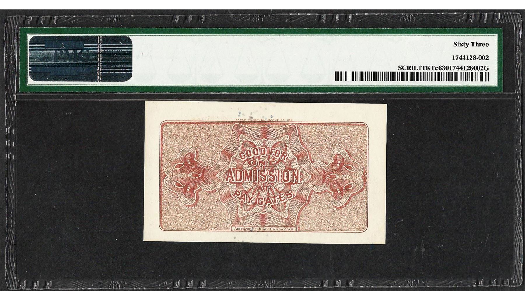 One 1893 World's Columbian Exposition Ticket PMG Choice Uncirculated 63. PMG Certified.