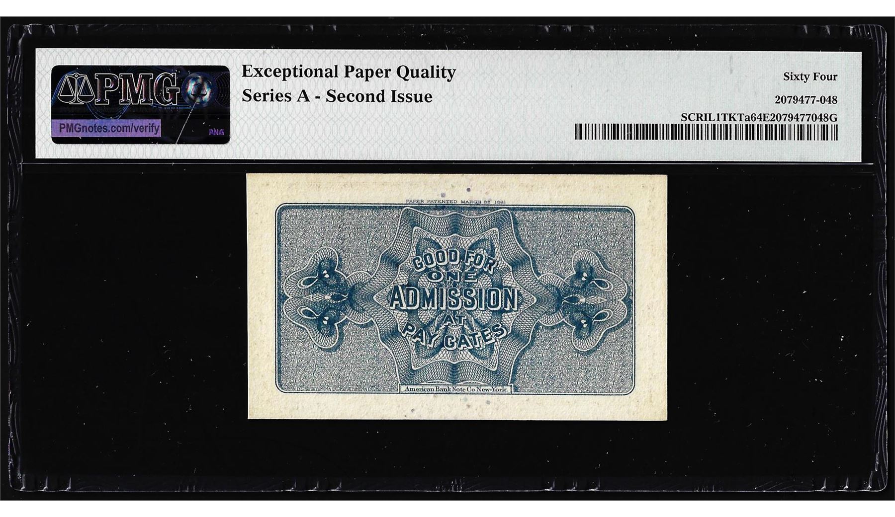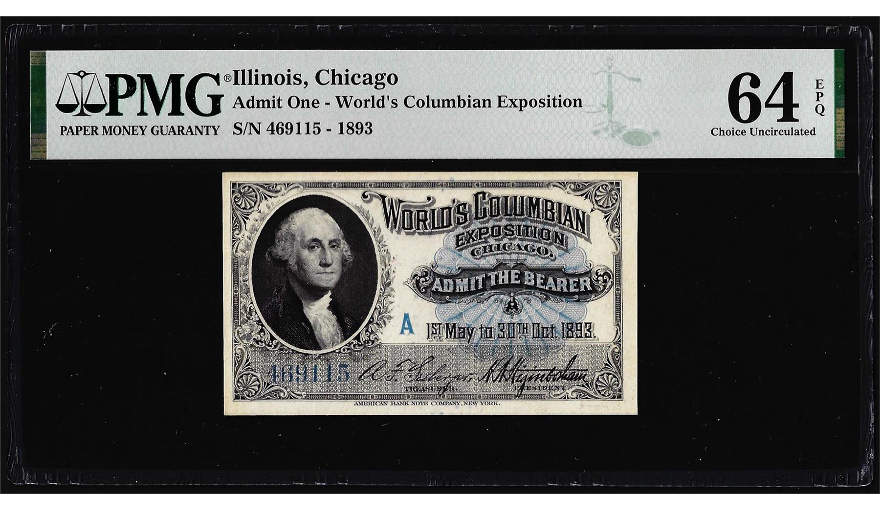 One 1893 World's Columbian Exposition Ticket Washington PMG Choice Uncirculated 64EPQ. PMG Certified.