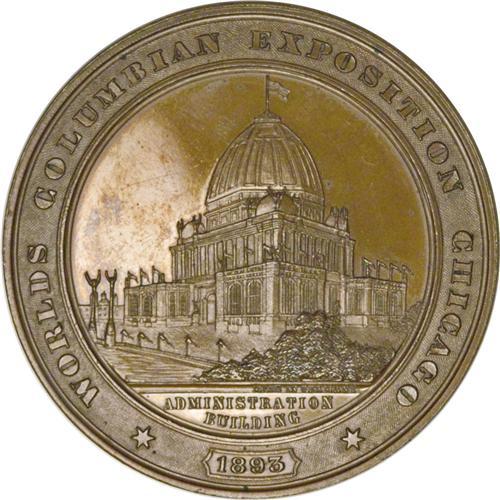 <B>1893 Worlds Columbian Exposition Chicago Eglit-54 PF63,</B></I> This is a chocolate brown Proof-63 bronze medallion issued to commemorate the Columbian Worlds Fair and Exposition held in Chicago in 1892 and 1893. There is no manufactures name on the piece but Made in Germany is just above the words Administration Building. This medallion is just one in group of tokens, medals and medallions struck to commemorate this two year exposition. Of note the medallion comes with what appears to be the original wooden case.<BR><BR><b>Shipping:</b> Coin/Currency (<a target="_blank" href="http://www.heritageauctions.com/common/shipping.php">view shipping information</a>)