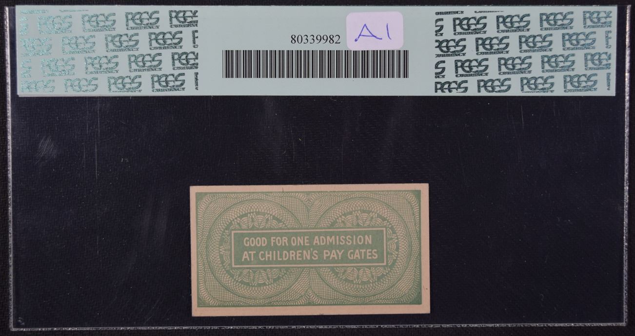 One 1893 Worlds Columbian Exposition Childrens Ticket PCGS 65PPQ.