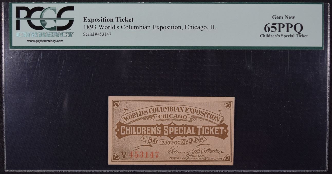 One 1893 Worlds Columbian Exposition Childrens Ticket PCGS 65PPQ.
