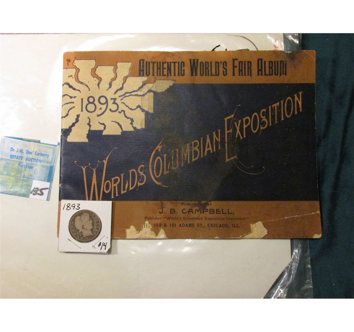 1893 Worlds Columbian Exposition Fair Album Booklet with Nice Lithographs; & 1893 P Barber Quarter. G.