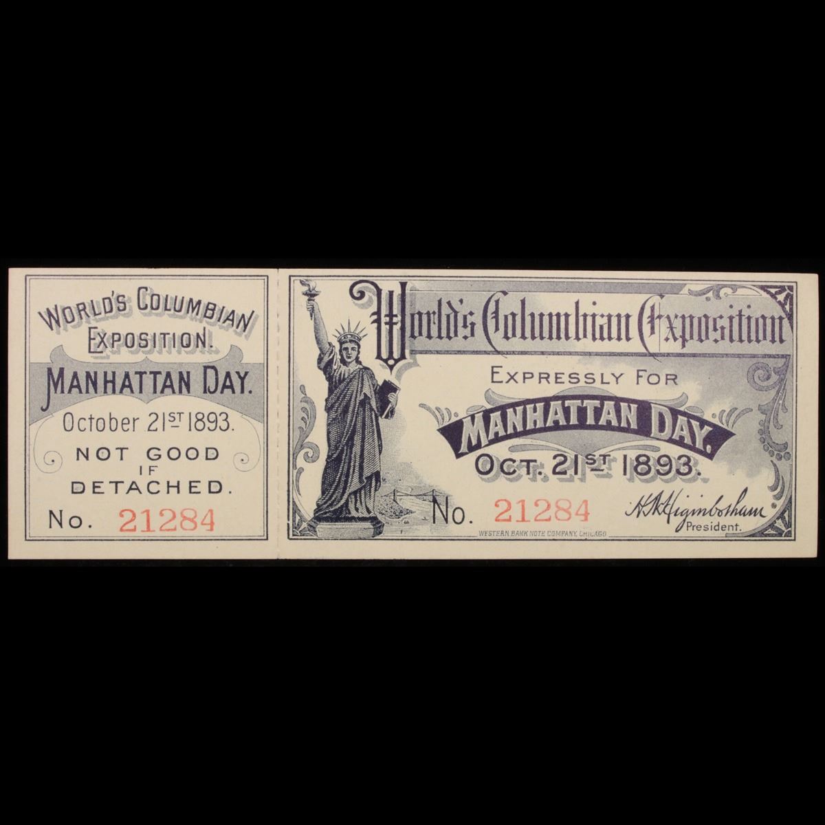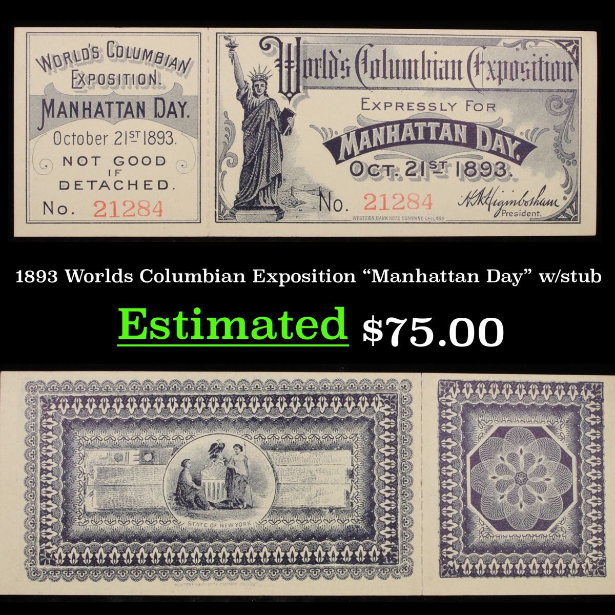 1893 Worlds Columbian Exposition "Manhattan Day" w/stub Grades Gem+ CU.