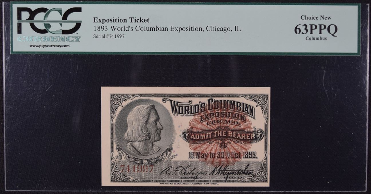 One 1893 Worlds Columbian Exposition Ticket PCGS 63PPQ.