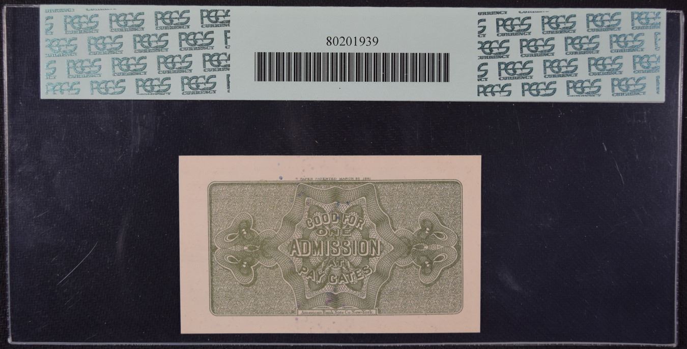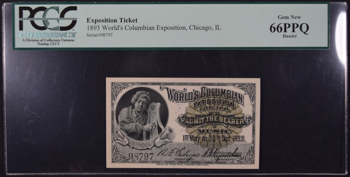 One 1893 Worlds Columbian Exposition Ticket PCGS 66PPQ.