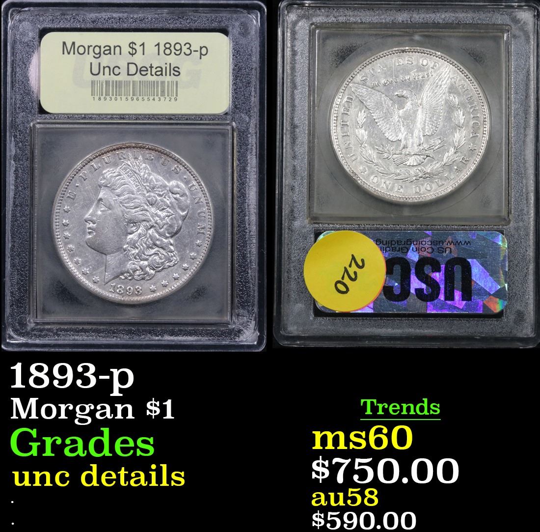 1893-p Morgan Dollar $1 Graded Unc Details By USCG.