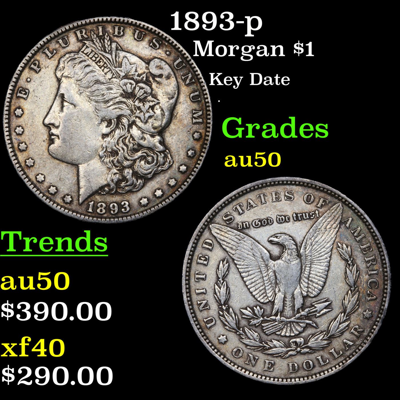 1893-p Morgan Dollar $1 Grades AU, Almost Unc