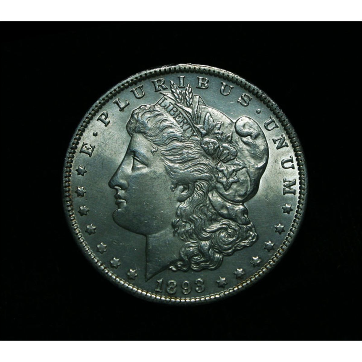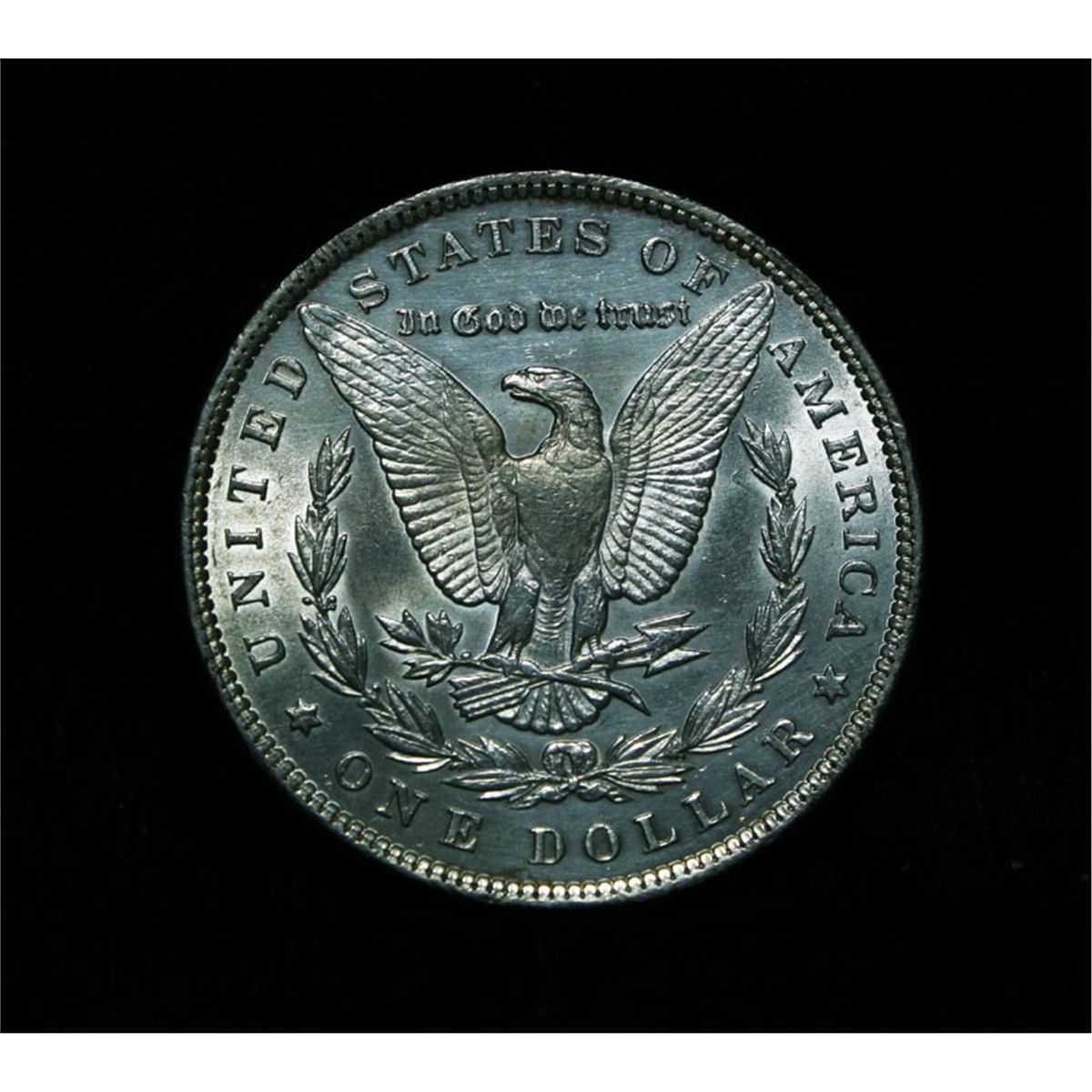A nice White Example with nice Luster of this Hard Date Morgan Dollar. The coin has a frosty look with very clean fields and devices. A very nice example. Coin World's Coin Values lists ms63 at $1250 and The Wholesale Greysheet lists ms63 at $925. Estimated Value $1000