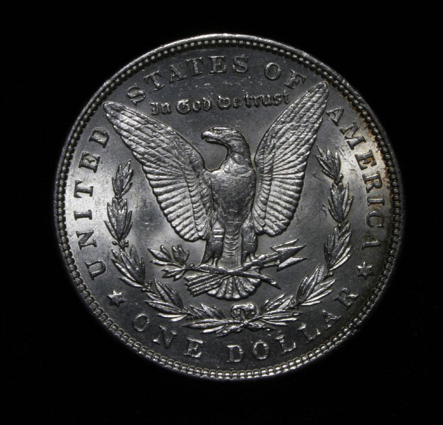 A blast White Example with Great Luster of this Hard Date Morgan Dollar. This coin is ONE bag mark off of ms64. It may actually Garner ms64 from some Graders. It has a bag mark in the Obverse Field that I feel moves it to ms63. It has the complete look of ms64 though. Coin World's Coin Values lists ms63 at $1250 and The Wholesale Greysheet lists ms63 at $825. Estimated Value $1000