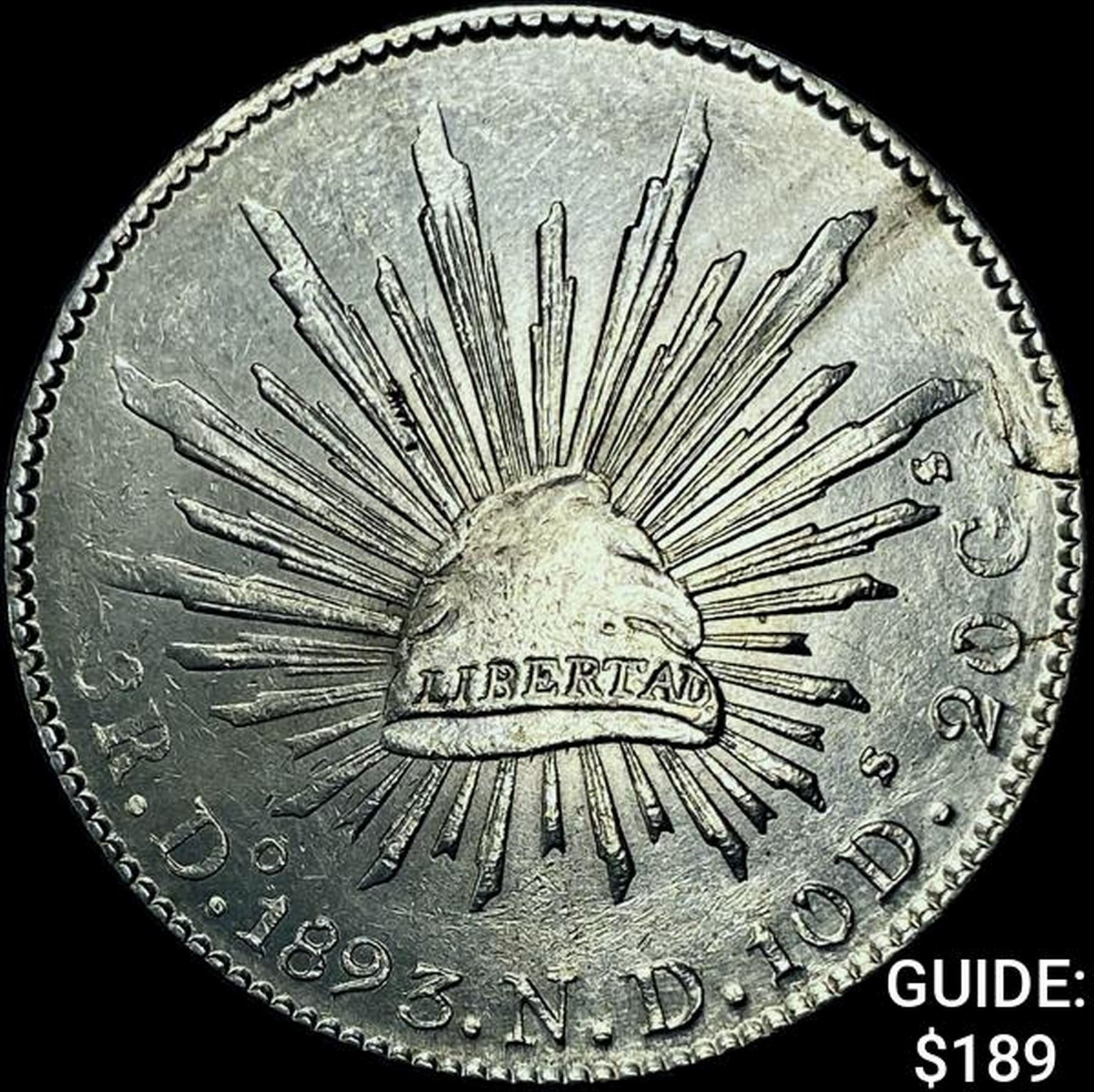 1893Do ND Mexico Silver 8 Reales Cap&Ray CHOICE AU