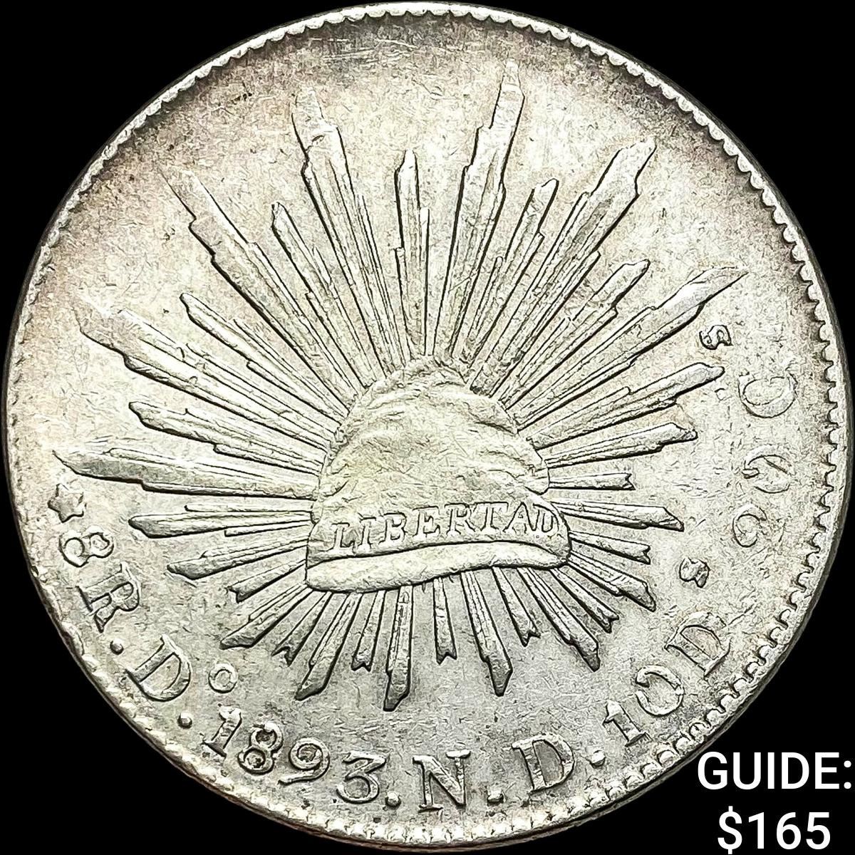1893Do ND Mexico Silver 8 Reales Cap and Rays CHOICE AU